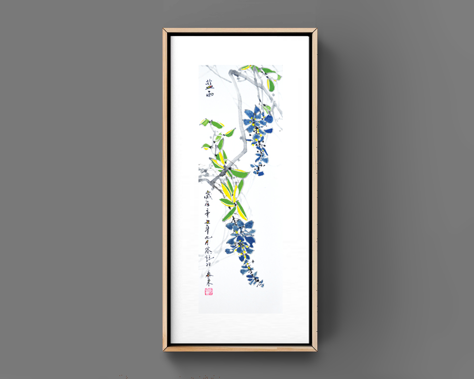 Wisteria blue Rain chinese Japanese sumie ink painting office home Haus decor wall art