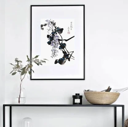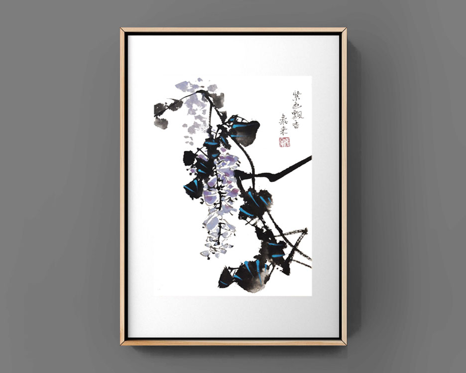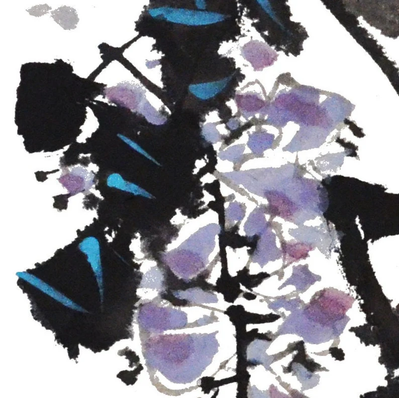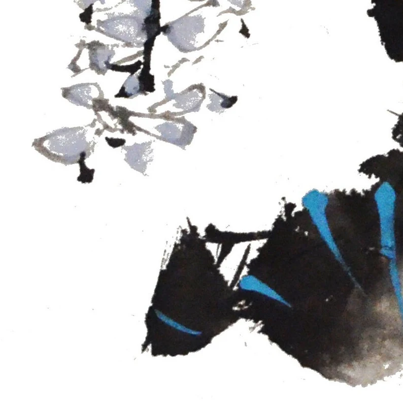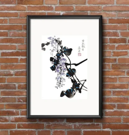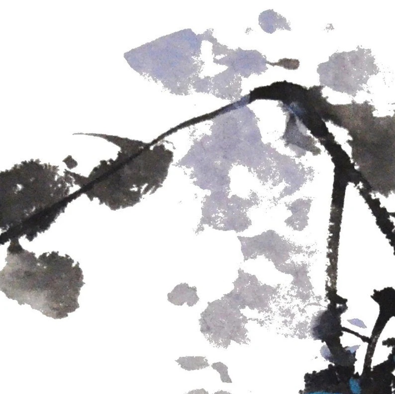 Blauer Regen japanische chinesische Tusche Malerei chinese painting Heim Haus Büro Deko Wand Kunst Printed