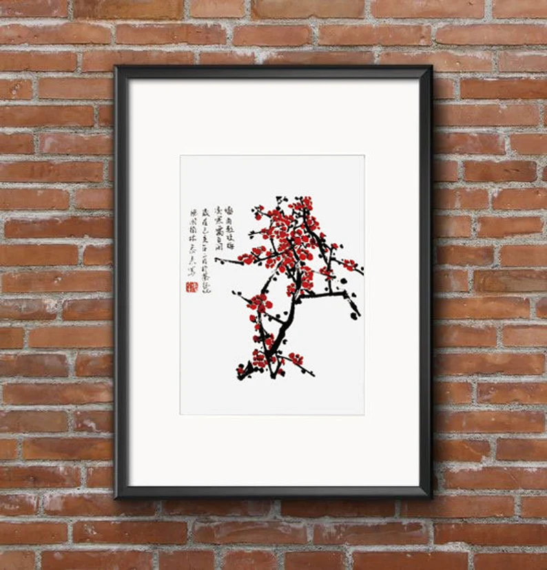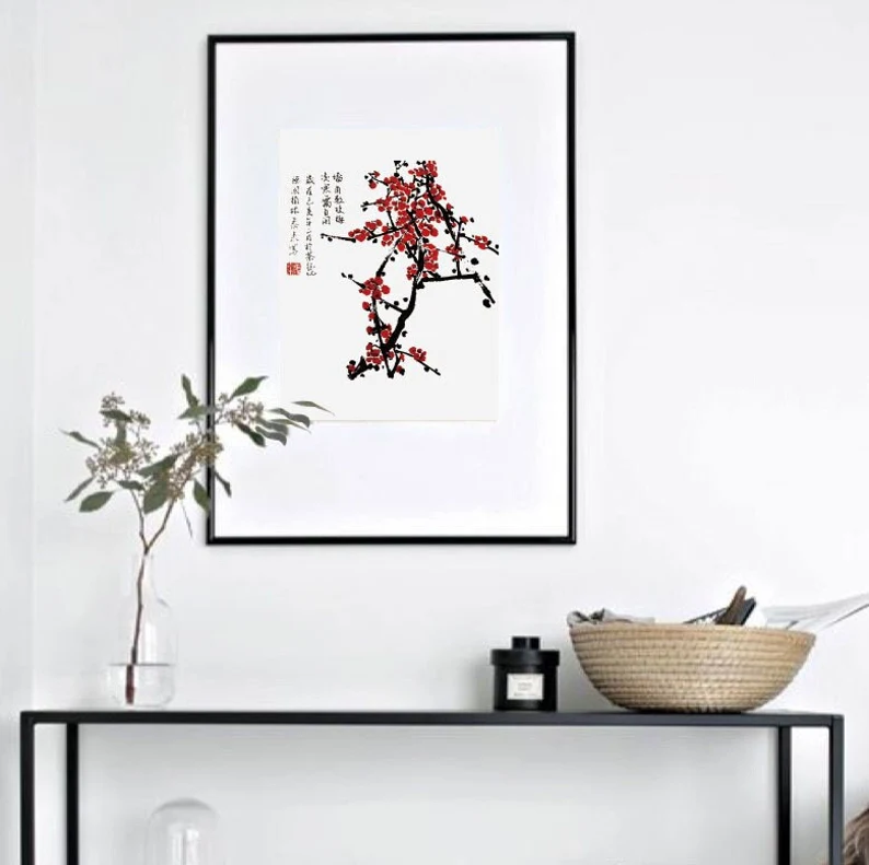 Plum Blumen japanische chinesische Tusche Malerei chinese painting Heim Haus Büro Deko Wand Kunst Printed