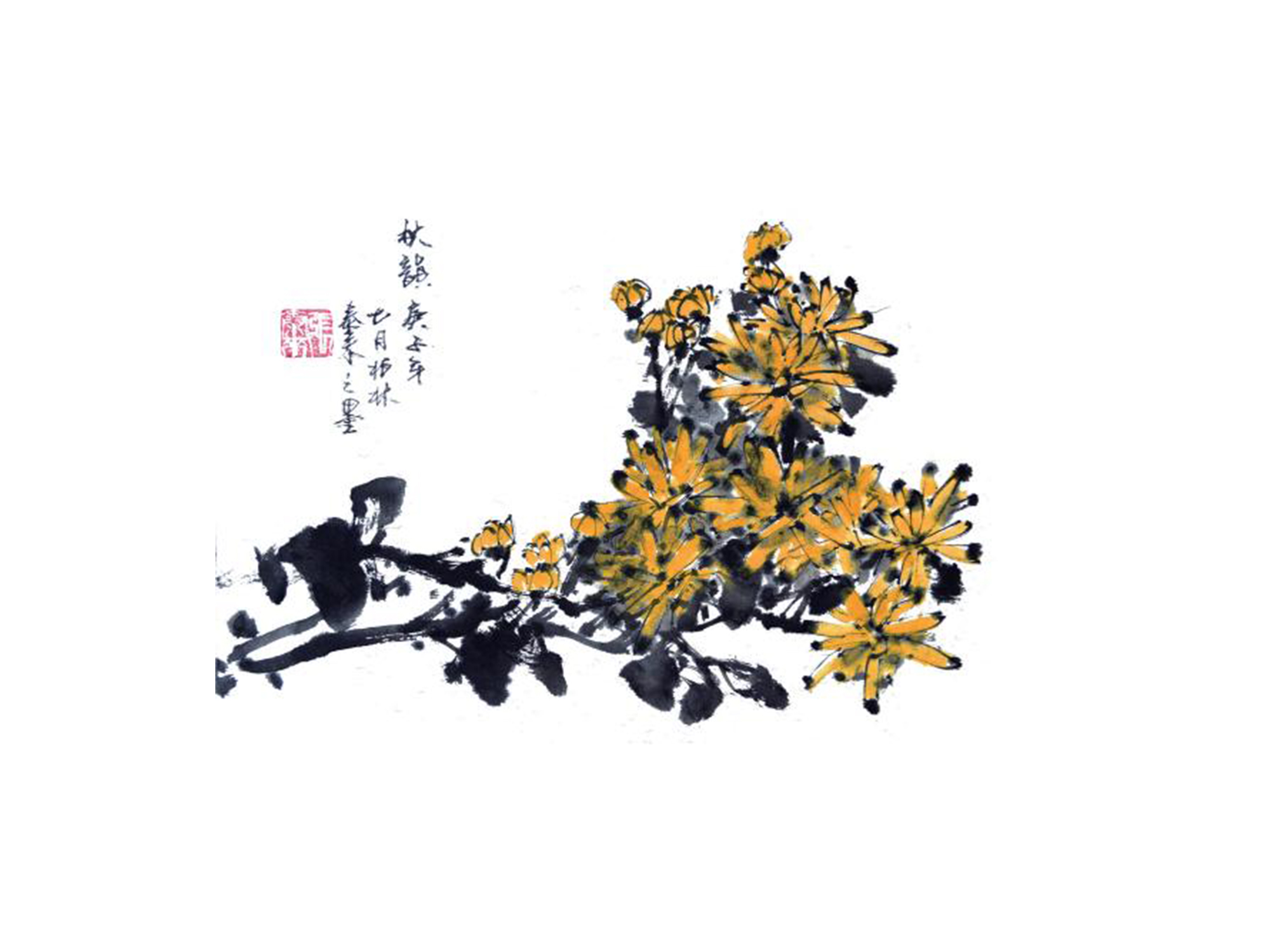 Postkarte Chrysantheme Tusche Malerei Sumi-e painting chinesische japanische zeichnung Kunstpostkarten